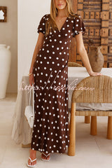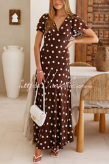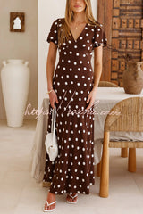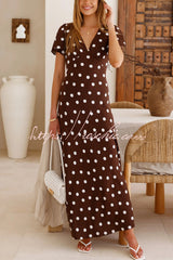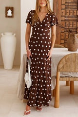 Polka Dot Print V-neck Short-sleeved Casual Holiday Maxi Dress