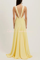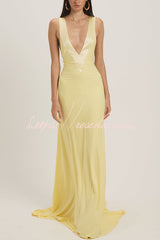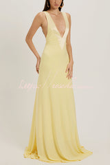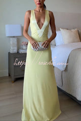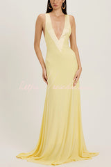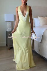 Moon Light Satin V-neck Draping Knit Fabric Backless Maxi Dress