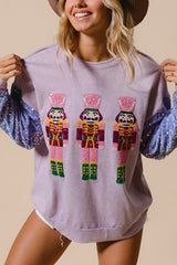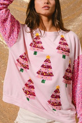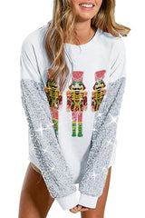 Christmas Casual Loose Round Neck Sequined Sleeve Sweatshirt