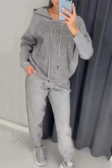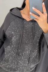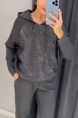 Fashionable Rhinestone Embellished Hoodie and Loose Pocket Pants Set with Elastic Waist