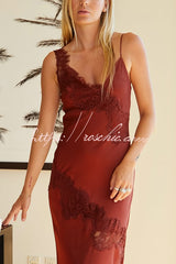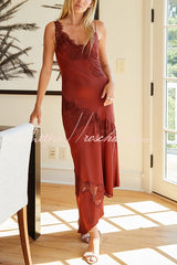 Sexy Lace Stitching Suspender V-neck Asymmetrical Maxi Dress