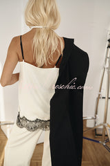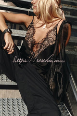 Versatile and Elegant Items Lace Petal Trim Cutout V-neck Slip Loose Tank