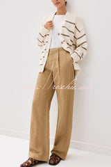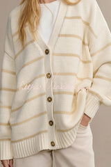 Striped Loose V-neck Long-sleeved Casual Knit Cardigan