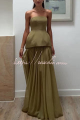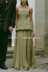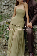 Classic Attendance Structure Strapless Tank and Pleated Tulle High Rise Maxi Skirt Set