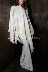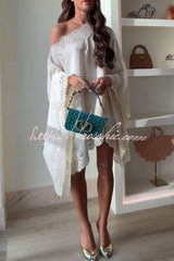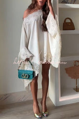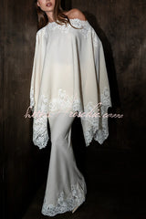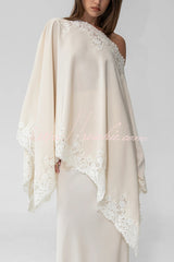 Like A Swan Satin Lace Trim Off Shoulder Wide Sleeve Cape Top