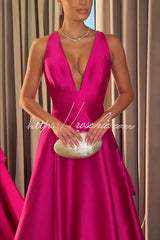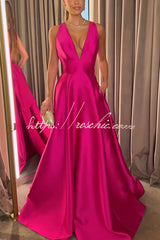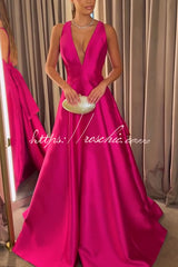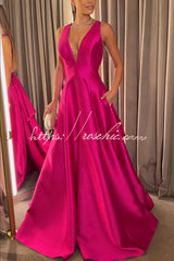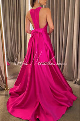 Modern Charm Satin Back Bow Detail Pocketed Porm Maxi Dress