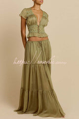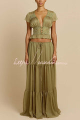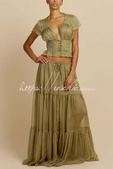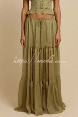 Sabrina Chiffon Mid Rise Adjustable Waist Tiered Silhouette Maxi Skirt