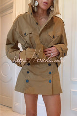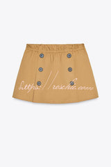 Chic Comfort Mid Rise Elastic Waist Contrast Buttons Pocket Mini Skort
