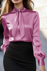 Solid Color Satin Long-sleeved Casual Tie-front Shirt