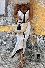 Traveling The Horizon Satin Colorblock Strap Loose Maxi Dress