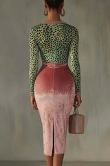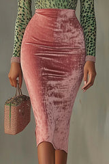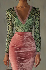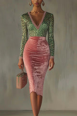 Fashionable Velvet Patchwork Stretch Slim Midi Dress