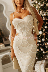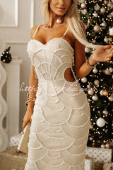 Own It Pearl Sequin Embellished Sexy Backless Cutout Strap Maxi Dress