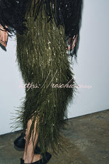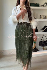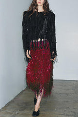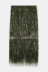 Party Crasher Layered Sequined Tassels High Rise Back Zipper Midi Skirt (Shipped Within 24 Hours)