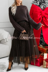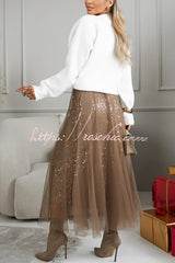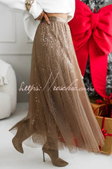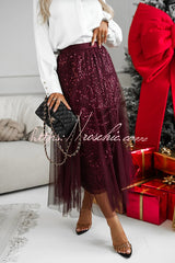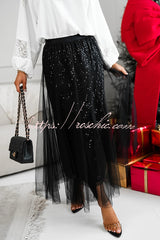 Party Daydream Sequin Tulle High Rise Elastic Waist Maxi Skirt