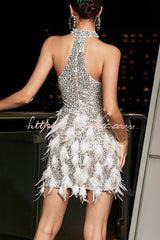 Stylish Sequined Sleeveless Feather-embellished Slim-fit Mini Dress