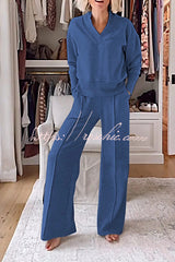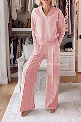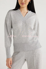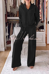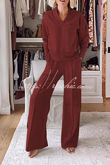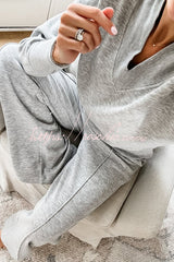 Weather Gets Cold Solid Color V-neck Top and Elastic Waist Pocketed Lounge Pants Set