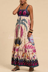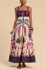 Bohemian Tropical Print Backless Casual Resort Maxi Dress