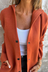 Solid Color Casual Long Sleeve Single Breasted Hooded Jacket