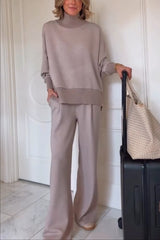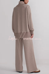 Berner High-Neck Long Sleeve Side Zipper Sweatshirt and Elastic Waist Pocketed Loose Pants Set