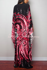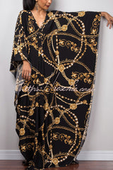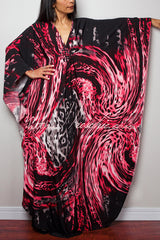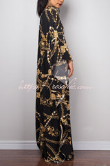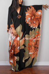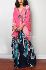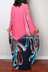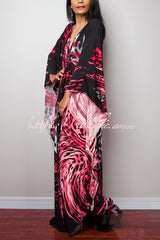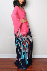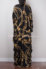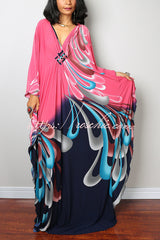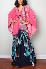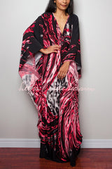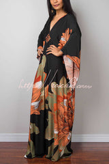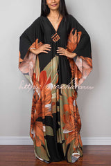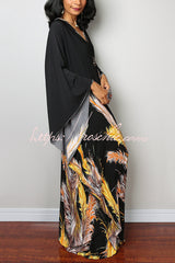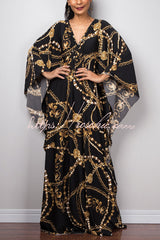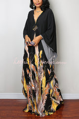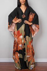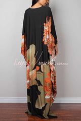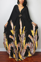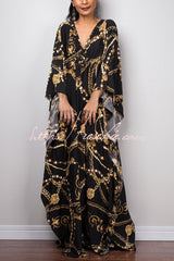 Unique Print Loose V-Neck Batwing Sleeve Casual Maxi Dress
