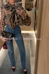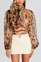 Peregrine Semi-sheer Silk Animal Print Bow Neck Balloon Sleeve Loose Blouse