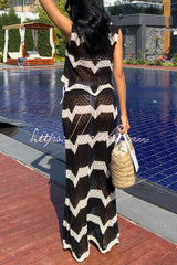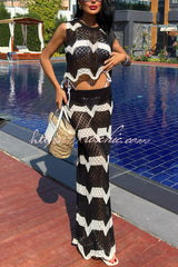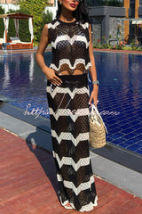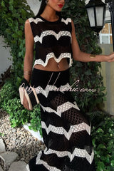 Black and White Color-blocked Sleeveless Cropped Top and Stretchy Knit Maxi Skirt Set