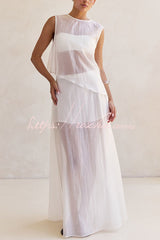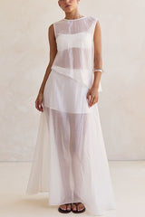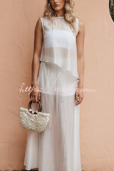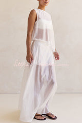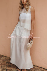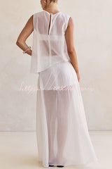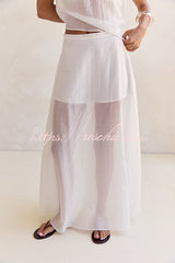 Lena Semi-sheer Irregular Hem Top and High Rise Side Zipper A-line Maxi Skirt Set