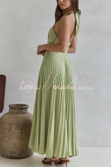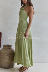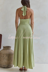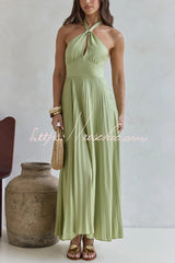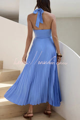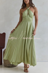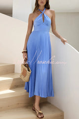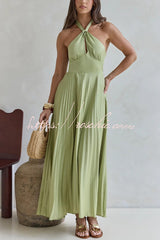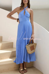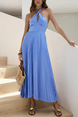 Solid Color Halter Neck Hollowed-out Casual Pleated Holiday Maxi Dress