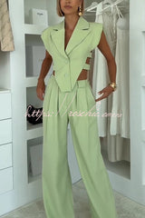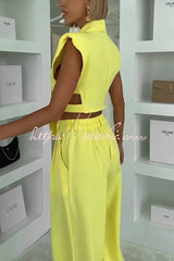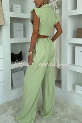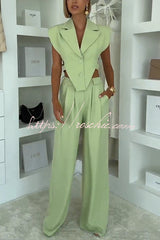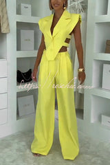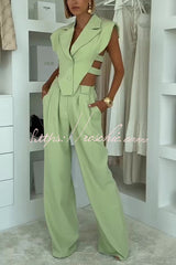 Fashion Style Lapel Waist-baring Irregular Vest and Elastic Waist Pocket Loose Pants Set
