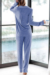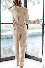 Home-style Loose-fitting Long-sleeved Pocket Shirt and Elastic Waist Casual Pants Set