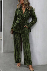 Solid Color Velvet Loose Long-sleeved Top and Elastic Waist Pocket Casual Straight-leg Pants Set