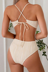 Unique Textured Thin Strap Backless Elastic One-piece Swimsuit