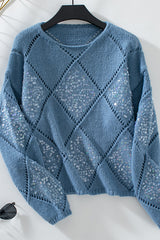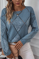 Fashionable Hollow Sequined Loose Rhombus Knitted Sweater
