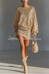 Glow Season Sequin Long Lantern Sleeve Ruched Hip Loose Mini Dress