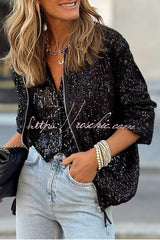 Star Kisses Sequin Zipped Long Sleeve Relaxed or Party Coat