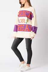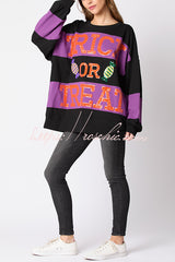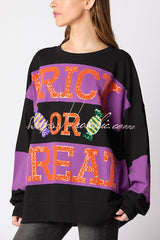 Halloween Letter Sequined Color Block Loose Casual Sweatshirt