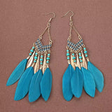Boho vintage style with colorful feather tassel dangle drop earrings,Perfect for adding a pop of color to any outfit,Ideal for all-day wear,Surprise your friends and family with these unique earrings