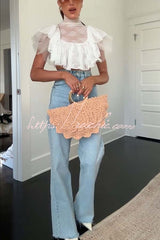 Kathlyn Lace Layered Tulle High Neck Ruffle Cropped Top