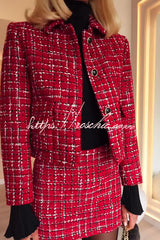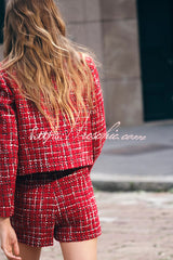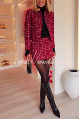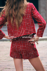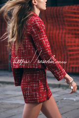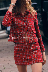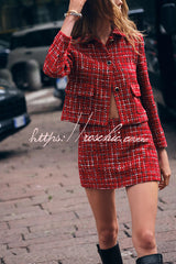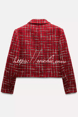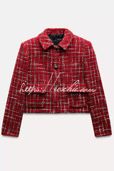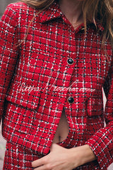 Tweed Plaid Textured Long-sleeved Casual Pocket Jacket