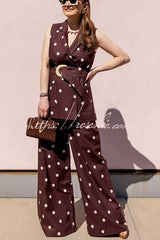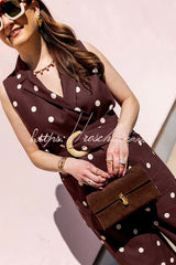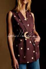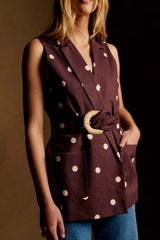 Versatile Chic Linen Blend Polka Dots Belted Pocket Lapel Suit Jacket