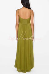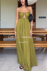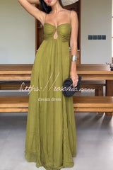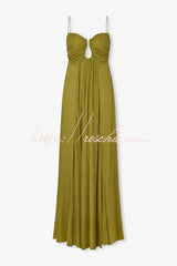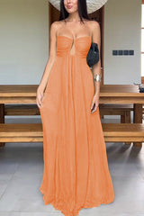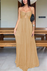 Soft and Elegant Metal Hollow Design Back Smocked A-line Slip Maxi Dress