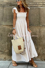 Singing Solo Multi Plaid Smocked Bust Maxi Dress