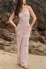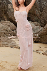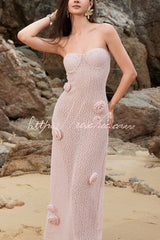 3D Floral Sleeveless Off-shoulder Fitted Vacation Cover-up Maxi Dress