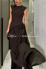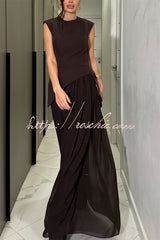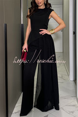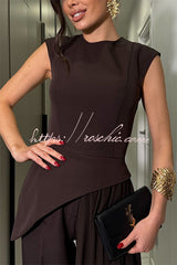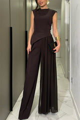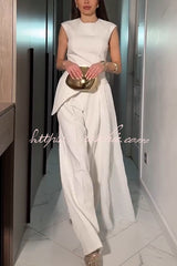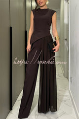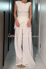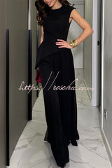 Cecily Short Sleeve Drape Tulle Hem Top and High Waist Pocket Wide Leg Pants Set