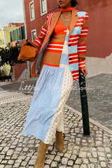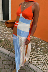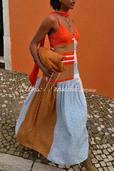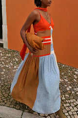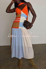 Vibrant Touch Color-blocked Polka Dot Print Slip Pleated Hem Maxi Dress