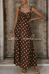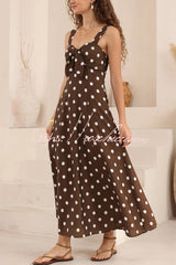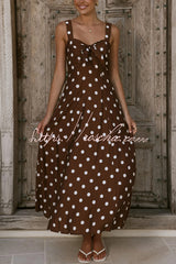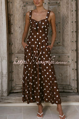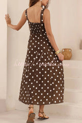 Polka Dot Print Back Pleated Casual Pocket Holiday Maxi Dress