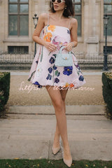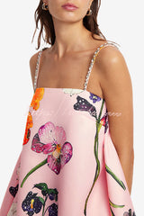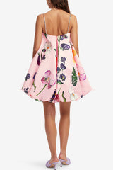 Whimsical Charm Wildflowers Print Embellished Shoulder Straps Bubble Hem A-line Mini Dress