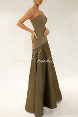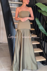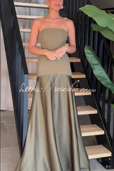 - Discover the timeless elegance of our dresses. This strapless gown features a corset-like hip and is paired with an elegantly draped satin skirt. This piece exudes elegance, sophistication and femininity. This masterpiece is and will continue to be an iconic piece in our permanent collection.Our distinctive clothing will add instant style to your wardrobe.