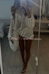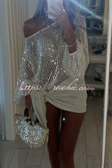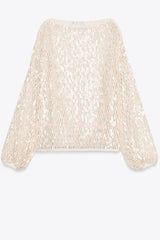 Maja Knit Sequin Hollow Out Wide Neck Balloon Sleeve Loose Cover-up Top