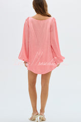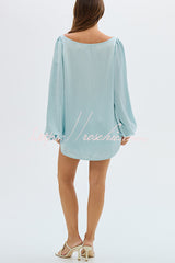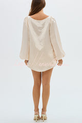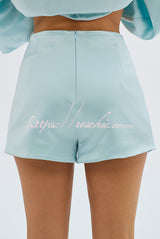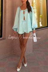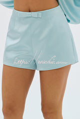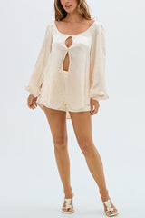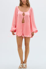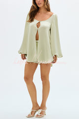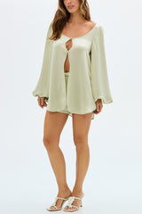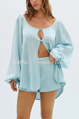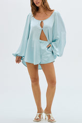 Alexis Satin Cutout Button Balloon Sleeve Shirt and Mid Waist Bow Detail Pocket Shorts Set